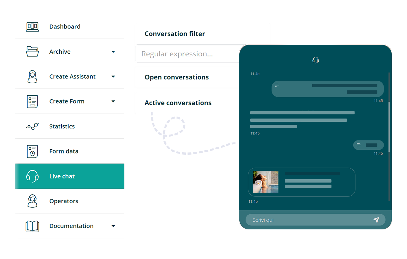 Crea il tuo Assistente senza necessità di particolari competenze tecniche e senza scrivere una riga di codice. Grazie al builder intuitivo dai forma, in pochi minuti, al tuo Assistente Virtuale pronto per essere pubblicato.